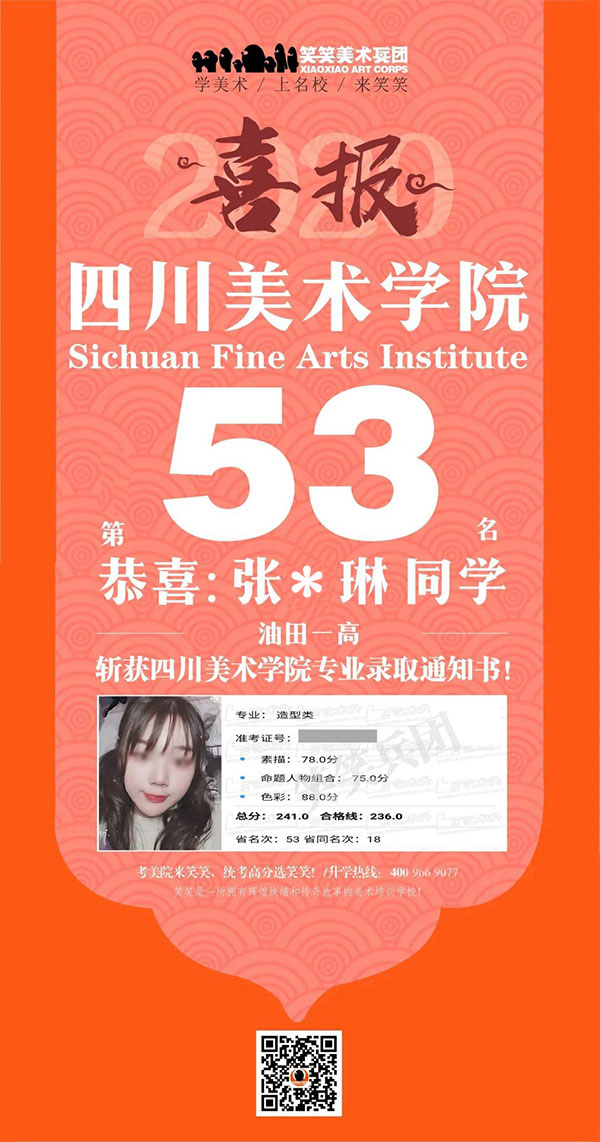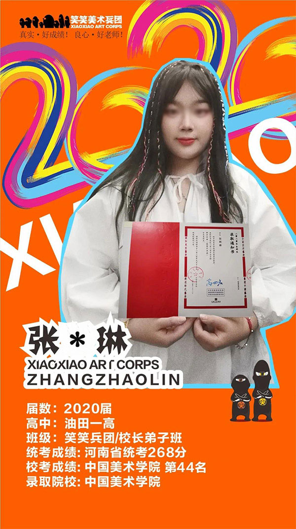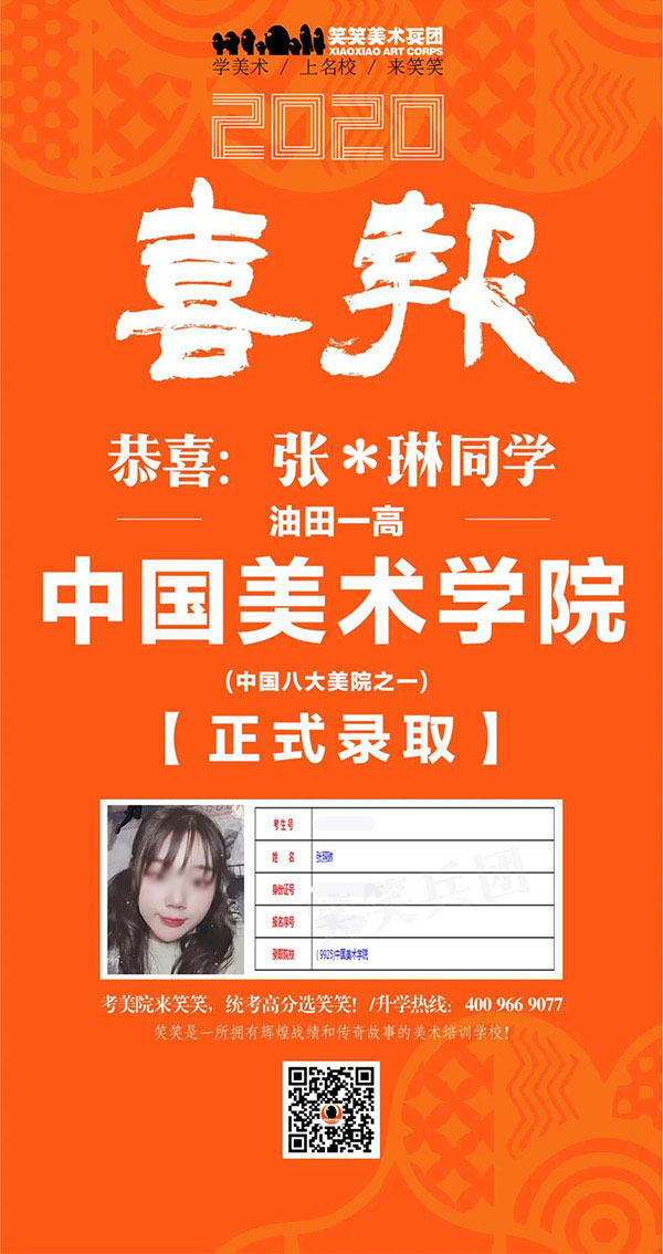张照琳 笑笑美术兵团2020届小兵 油田一高 2020年被 中国美术学院 录取