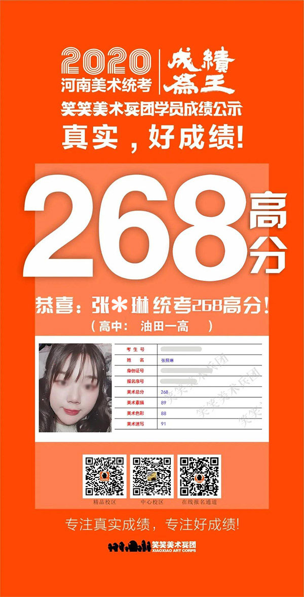 河南统考268高分!央美全国初试状元!中国美术学院、四川美术学院、山东艺术学院专业录取!中国美术学院最终录取!