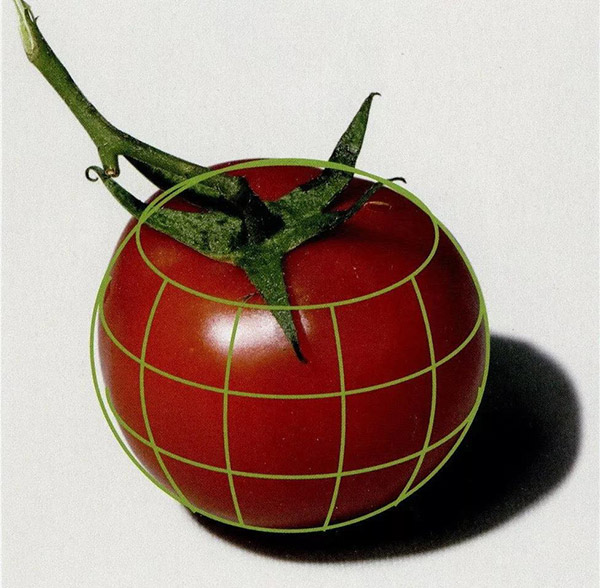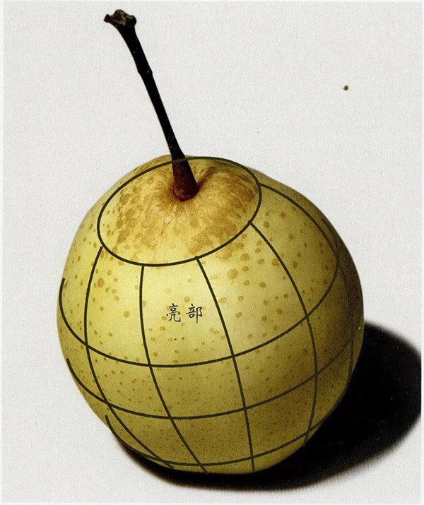 蒂窝向左:亮面在苹果“窝”处,明暗交界线几乎是标准的弧形。
