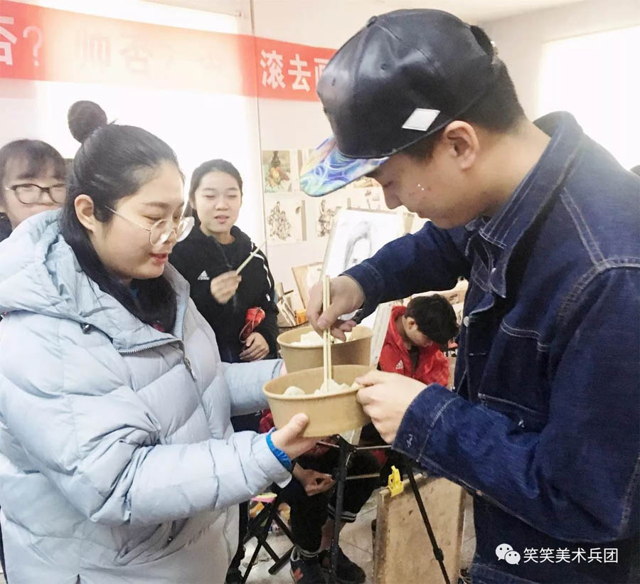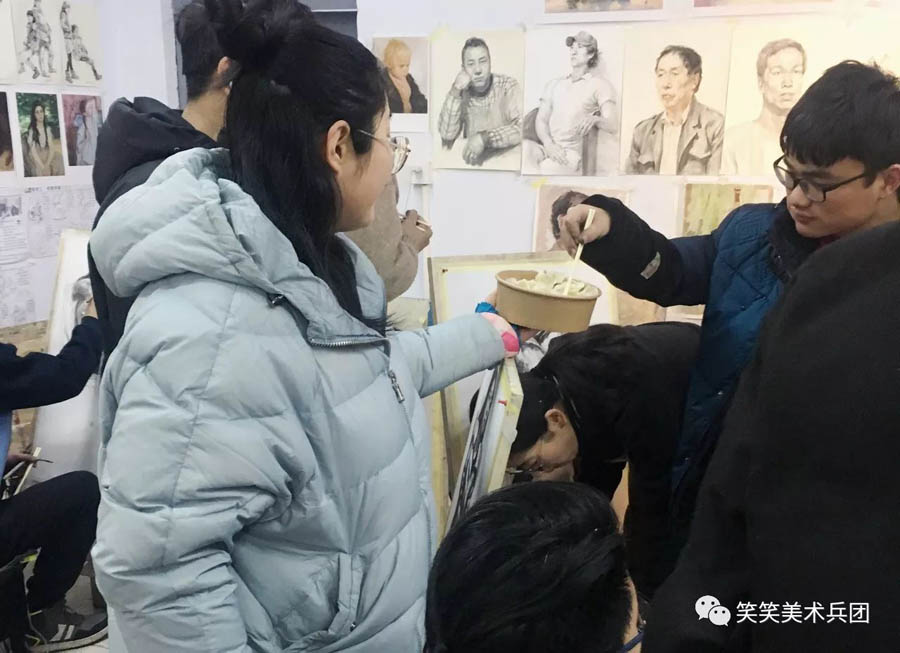 对大部分美术生来说,冬至大概是个临界点吧,联考的终结校考的起步。画室里的朝朝夕夕和往常一样,没有所谓的“冬至大如年”,也未必有热腾腾的饺子和汤圆,有的只是拼校考的纸笔簌簌。放下画笔,瞄瞄盒里见底的颜料,再看看微信里一条条蹦出的节日祝福,真的很想回一句: 不要再喊我吃饺子了,进入画画的世界,我根本站不起来!麻烦给我送一盘好么?……蟹蟹!