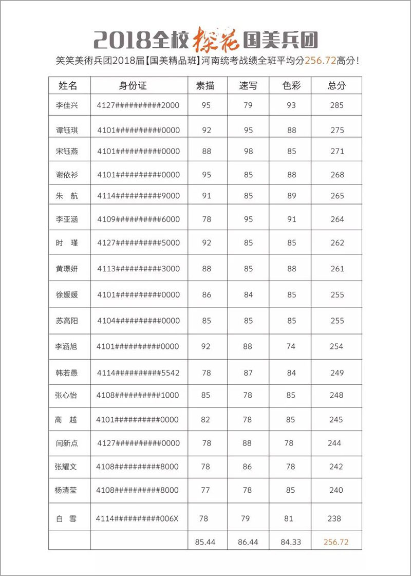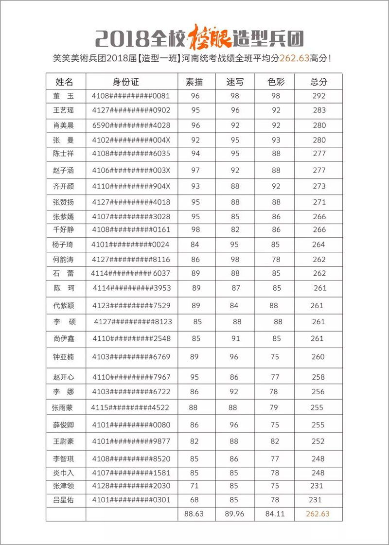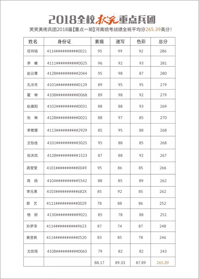 2018届笑笑美术兵团统考战绩: