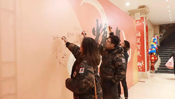 晚会倒计时,笑笑家人们陆续到达年会现场,大家欢声笑语,携手合影。在打卡许愿墙处,家人们纷纷留下了对笑笑集团新一年的祝愿。