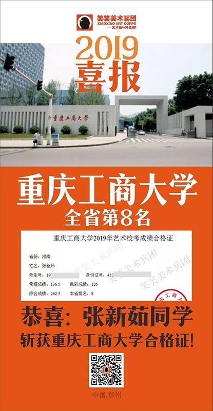 截至目前,笑笑美术兵团已斩获重庆工商大学河南省第8名、第25名、第37名、第63名、第90名(3人)、第131名(3人)、第174名等优秀战绩!全省前100名占7人!