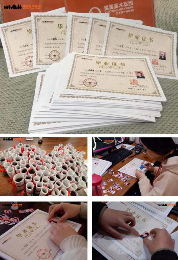 作为首届获得笑笑美术兵团毕业证的小兵,我们是自豪的,我们是幸运的,这小小的证书见证了我们努力的努力和汗水。笑笑,是梦开启的地方;笑笑,是最温暖的地方;笑笑,是战斗过的地方;笑笑,见证友谊的地方;笑笑,是提升自我的地方;笑笑,也将是梦实现的地方!