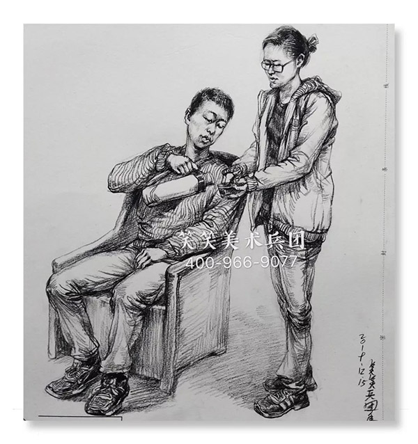 人物下身的深色裤子也要求考生主动归纳用线表达结构的能力。