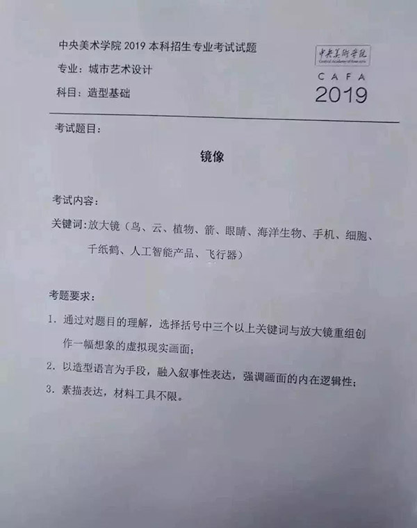 1、造型艺术专业素描考试午间不允许离场,请考生自备午餐;