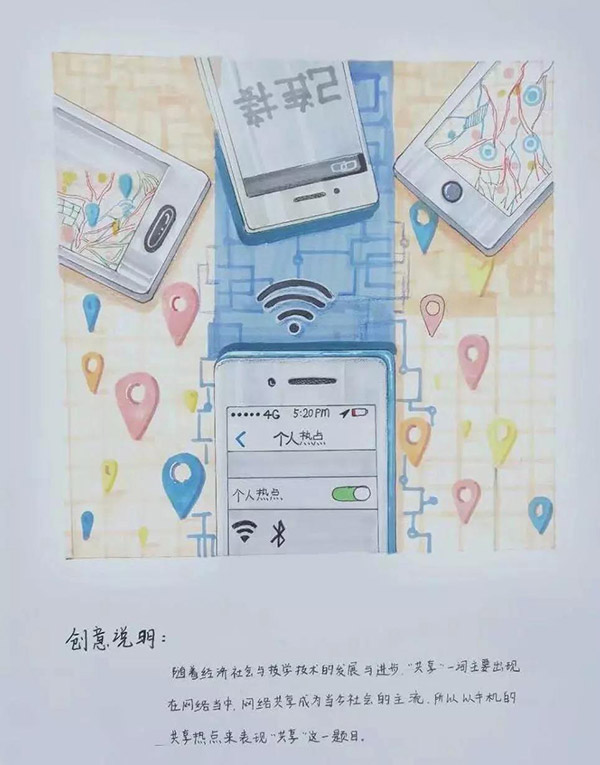 工具:马克笔、彩色铅笔、水粉、丙烯、水彩、黑色铅笔、炭笔均可,不允许使用油画颜料。