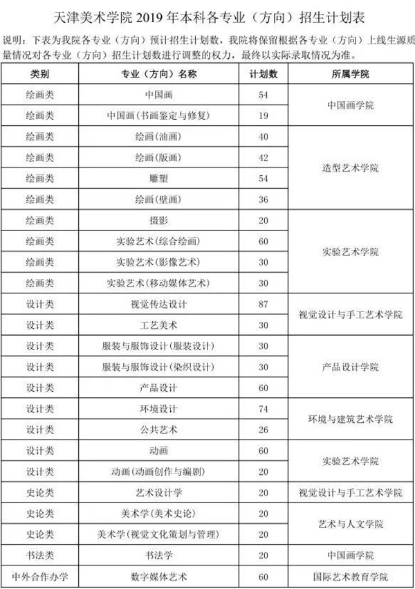 7、专业排名(绘画类、设计类、书法)在本大类招生计划10%以内(含10%)的考生,第一志愿报考我院,如由于文化成绩未被录取,2020年可免试专业(录取结束后,如未被其他院校录取,请将专业合格证复印件、本人申请、1寸照片一张于2019年10月寄至我院,我院将发放专业免试通知单)。
