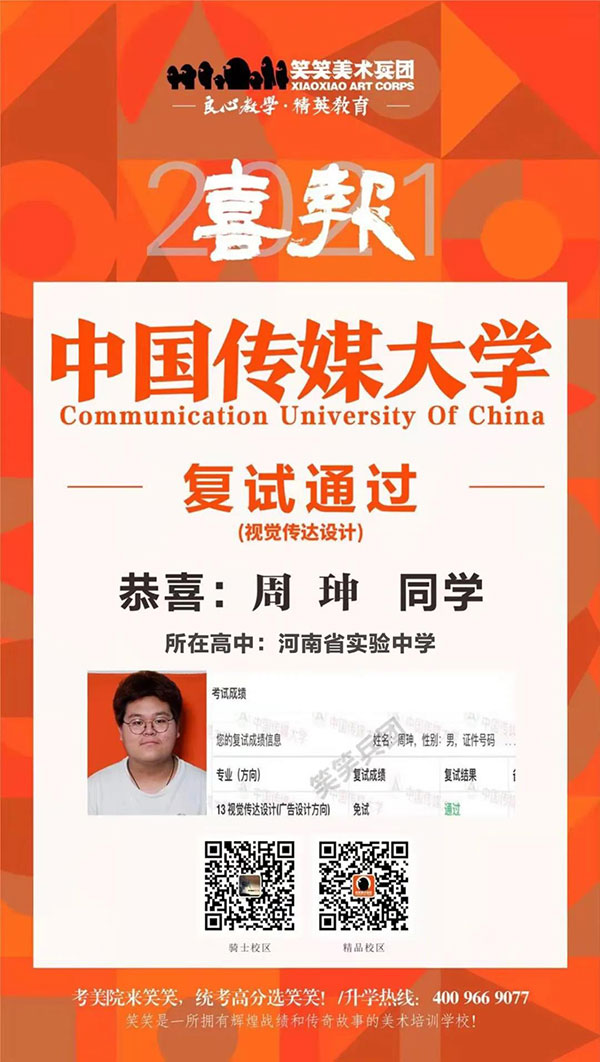 ▲周珅/中国传媒大学(视觉传达设计)复试通过
