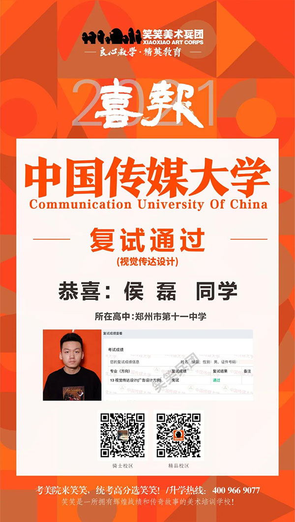▲侯磊/中国传媒大学(视觉传达设计)复试通过