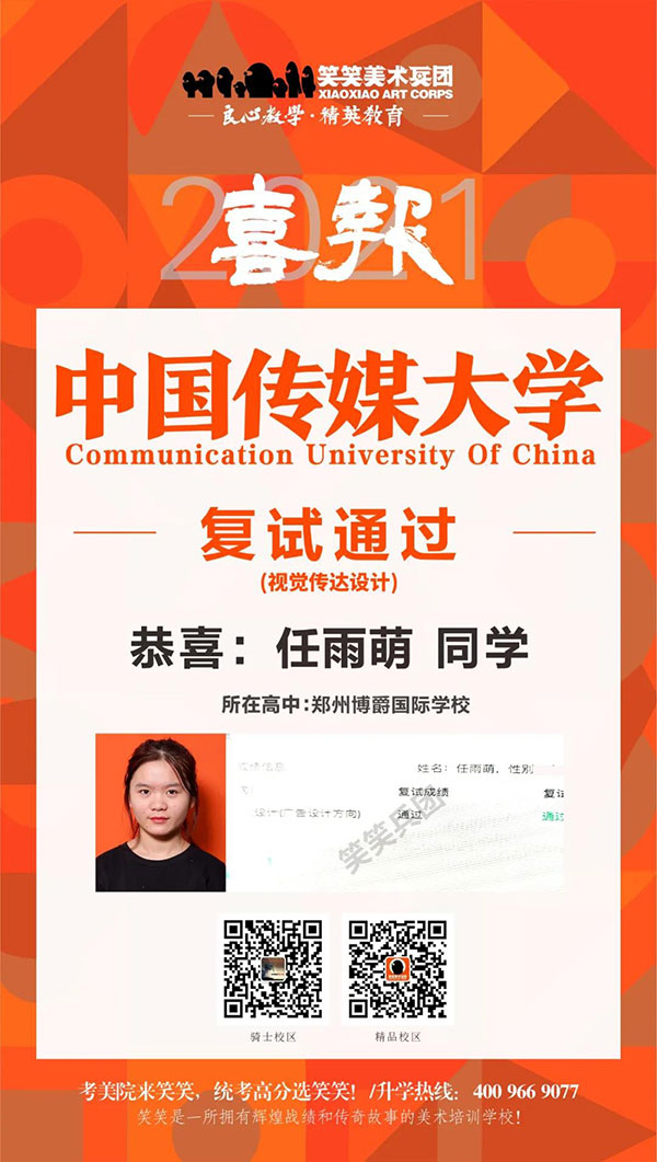 ▲任雨萌/中国传媒大学(视觉传达设计)复试通过