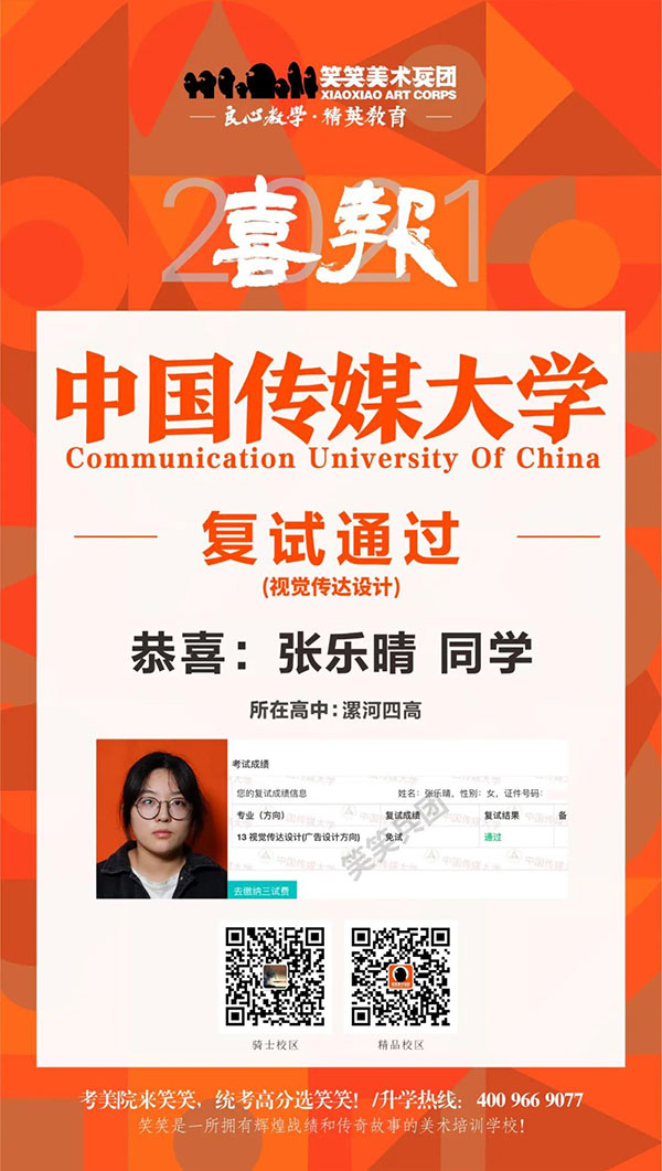 ▲张乐晴/中国传媒大学(视觉传达设计)复试通过