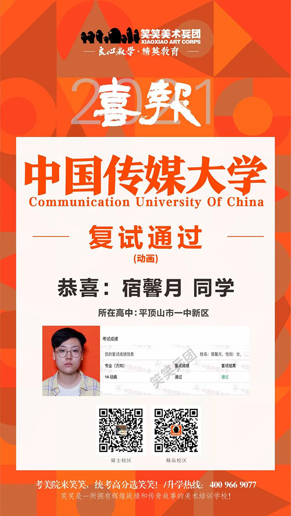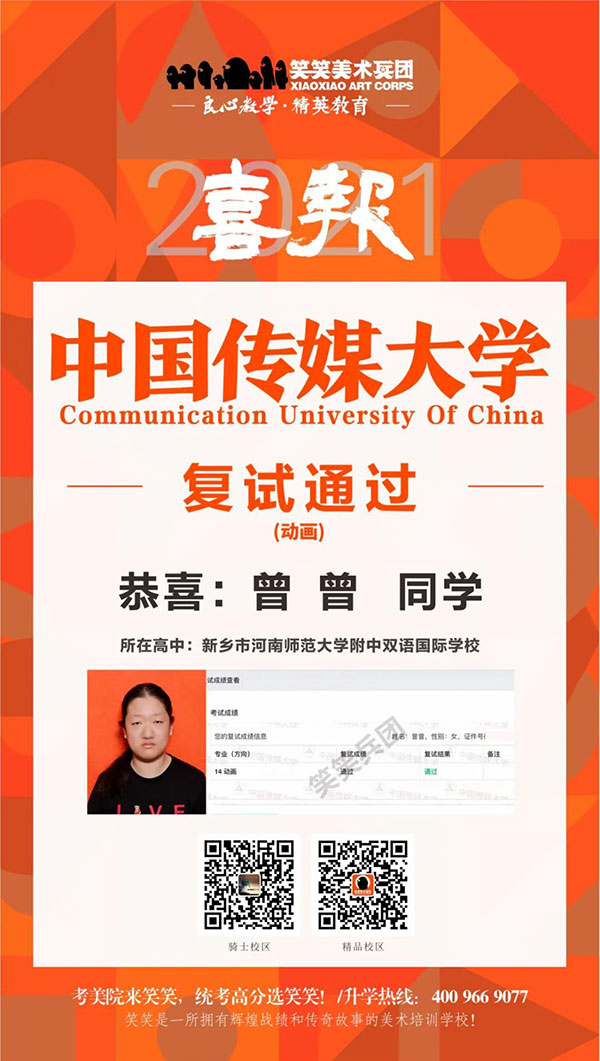 ▲曾曾/中国传媒大学(动画)复试通过