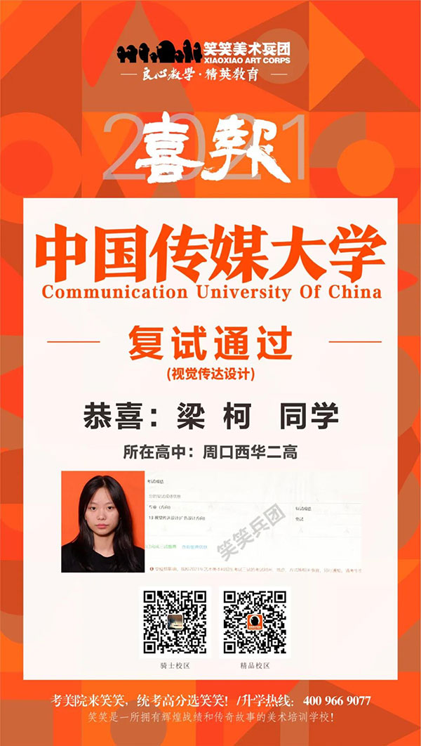 ▲梁柯/中国传媒大学(视觉传达设计)复试通过