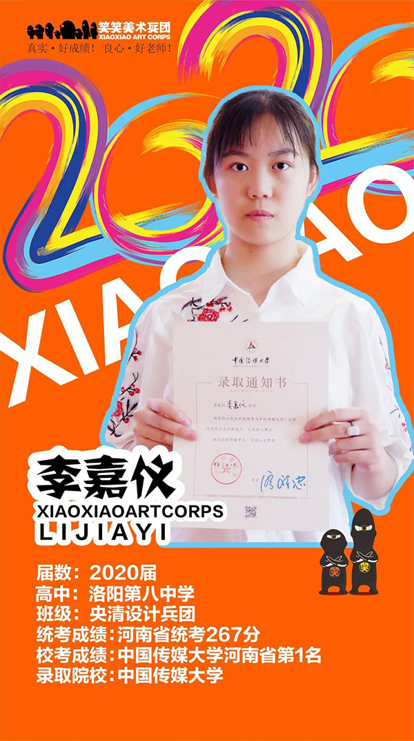 2019届笑笑学员贾懿琪斩获中央美术学院全国第8名(河南状元)!