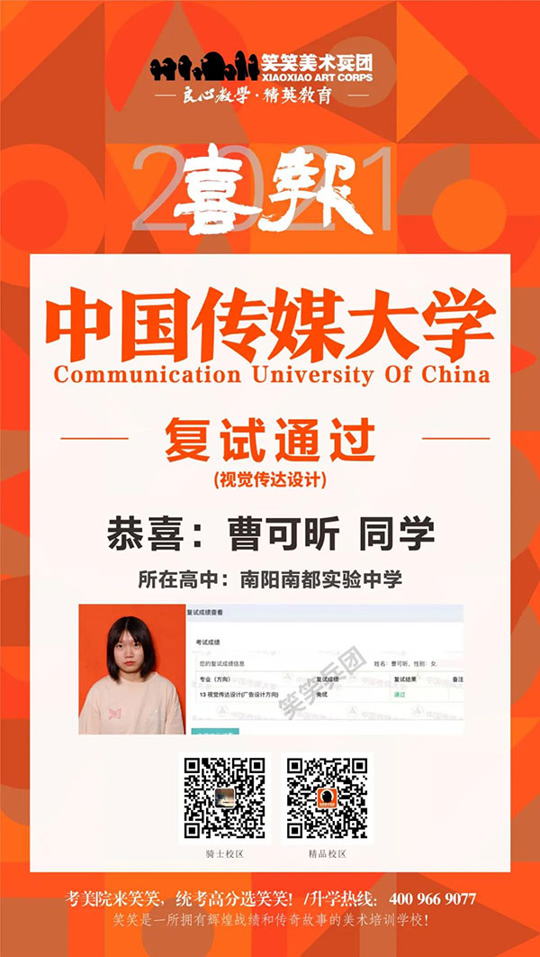 ▲曹可昕/中国传媒大学(视觉传达设计)复试通过