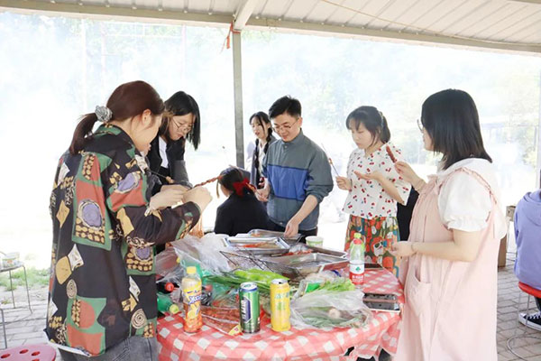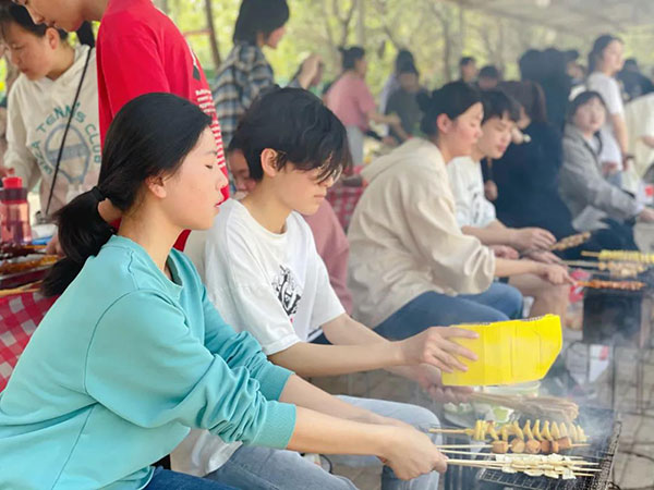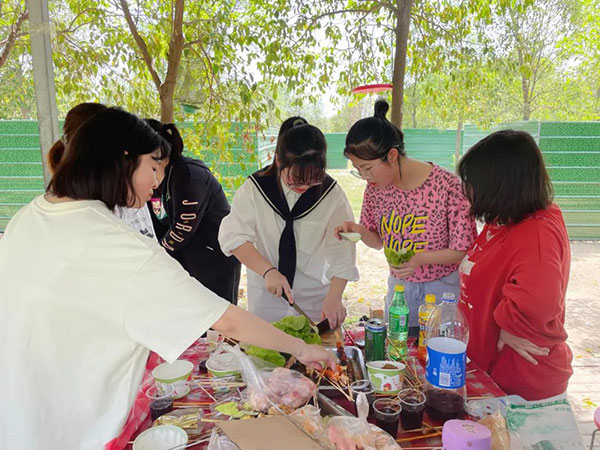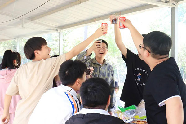 老师们也跨越了身份限制,融入到了学生群体当中,与学生们分享美食,一起游戏。不仅在学业上是好老师,也成为小兵们的生活上的好朋友。