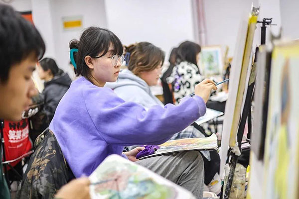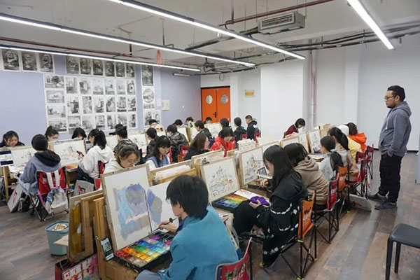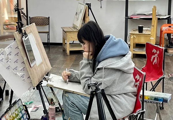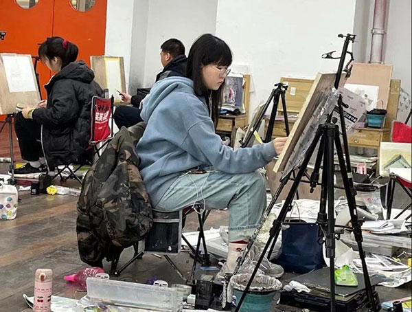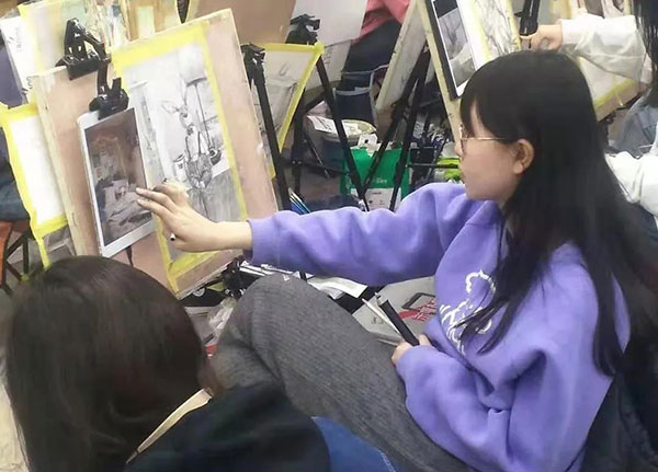 画室里的氛围一直都很好,我喜欢走廊上挂着一排排画的感觉,每天的课程安排也都让自己感觉很充实。班级里的老师们都很认真负责,会耐心地为我们讲解不懂之处,细心安排我们每一天的课程。
