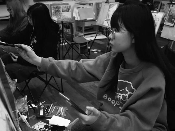 在画室里,我也同样秉持着将画画当做乐趣的想法,所以几乎从未感觉到很累,反而很满足,感觉或许这就是我想要的生活,这样轻松的心情让我不会总为画画而苦恼,不会经常迈入死胡同。闲暇时多看看好画,不要把自己拘束于小天地,要经常“开眼看世界”,站在巨人的肩膀上学习,可以让自己进步得很快。