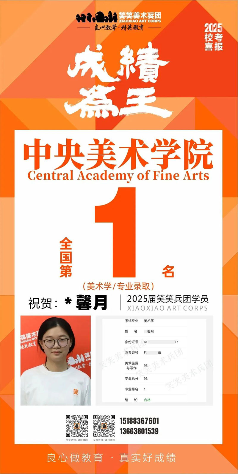 首先恭喜张馨月同学以第一名的成绩考取中央美术学院,无论现在还是未来,都希望你能像美丽的春色一样生机盎然。