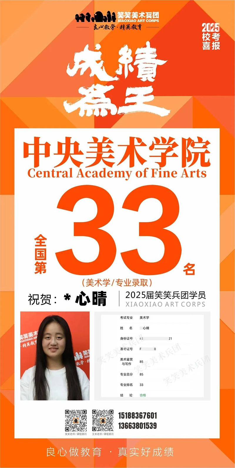 正如上面所言,你的反弹能力极强,你的韧性最好,正是这些优良的品质,终于你取得了满意的成绩,顺利录取中央美院。