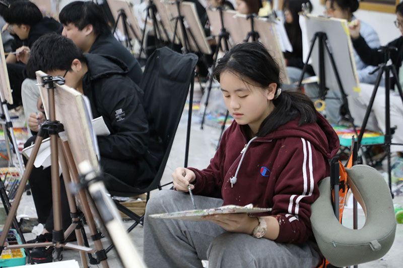 “其实从小就比较喜欢艺术方面,不仅仅是美术,就像以后从事一些艺术方面的工作,然后还想离高等学府更近一步,所以选择了美术艺考。经验就是我们要相信笑笑的老师,在遇到一些问题的话,我们都要多跟老师或者同学进行沟通,老师毕竟是我们这条道路的引领者。”