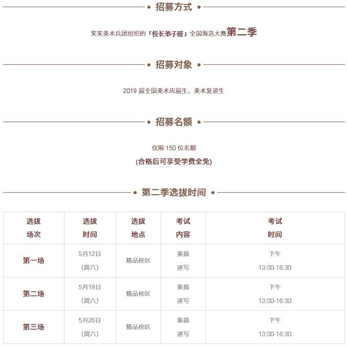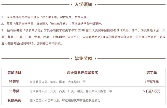 今日所说「校长弟子班」,乃是笑笑美术兵团面向全国招募广大有梦、有学、有志之士。由校长亲自授课,以师徒传授之模式选拔登堂入室之弟子,打造一流升学神话,培养高等艺术修素养,塑造全能高足弟子,为国家培养超一流艺术和设计人才。