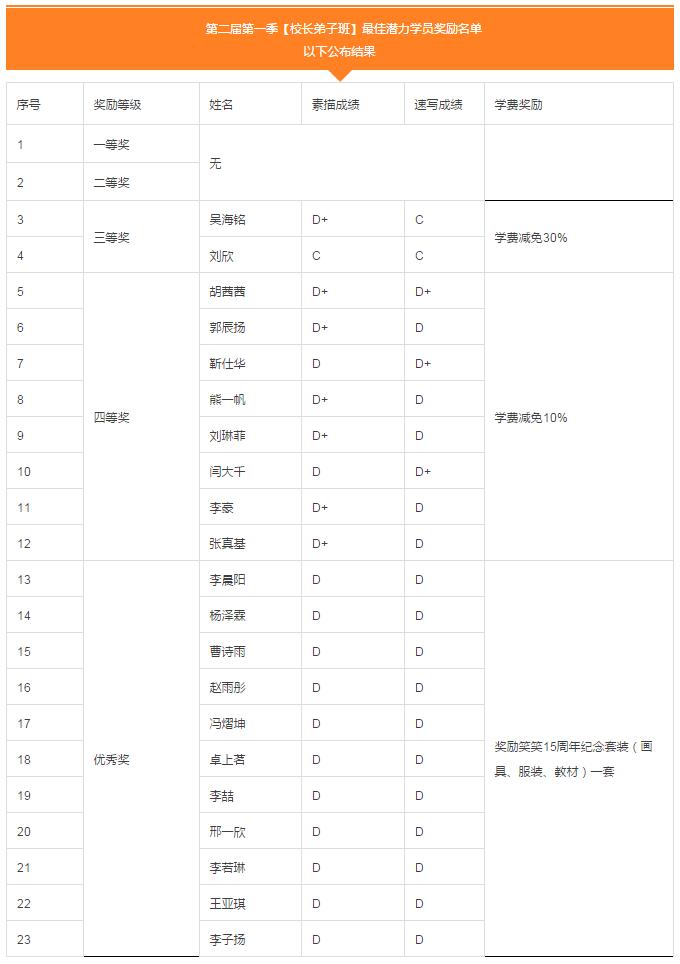 第一届校长弟子班成立于2013年,全班19名学员,作为全校标杆实验班,一切除了信心就是理想。我作为校长兼任班主任,严抓严管,高标准严要求,在姜校和张校配合努力下,成绩斐然,超越预期,本科率100%,其中李培鑫(应届)考了个鲁美全国第一名(油画),要想拿到这个专业全国第一非常难,这是河南省多年来唯一的鲁美油画全国第一名,含金量很高!班内同时还出了五个央美,一个清华,三个国美,川美全省第二第三名,北影全国第七名等优秀成绩。随后由于学校发展迅速,校长们忙于抓全校教学工作,所谓校长弟子班就此搁置,直到今天笑笑已发展为规模化、标准化、信息化运营,校长们有了更多的精力和重启校长弟子班的决心,这次第二届校长弟子班的开启,更多的是期待,是感恩,期待能有更高标准的优秀成绩,感恩这个俏皮又一本正经的社会。