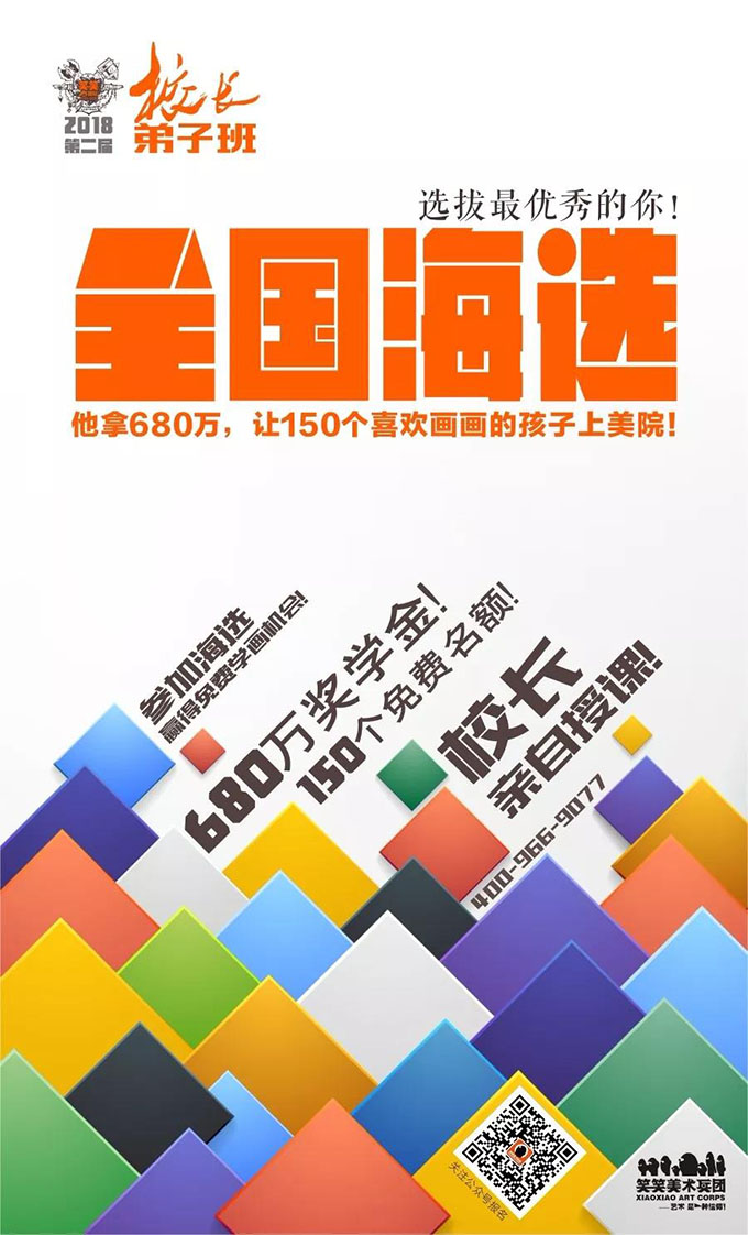 今日所说「校长弟子班」,乃是笑笑美术兵团面向全国招募广大有梦、有学、有志之士。由校长亲自授课,以师徒传授之模式选拔登堂入室之弟子,打造一流升学神话,培养高等艺术修素养,塑造全能高足弟子,为国家培养超一流艺术和设计人才。