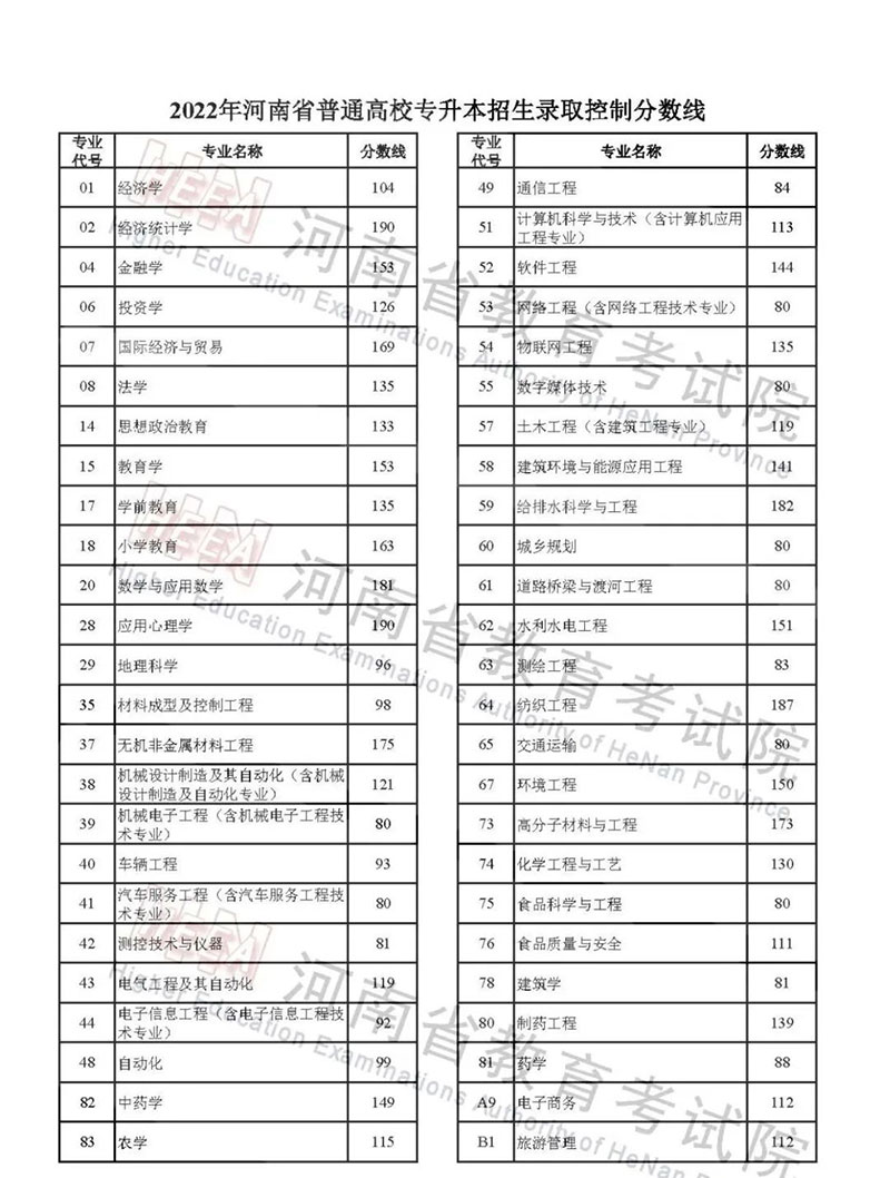 2023年河南省普通高校专升本,招生录取控制分数线,正式划定公布,具体详情笑笑美术兵团整理如下: