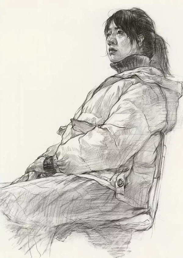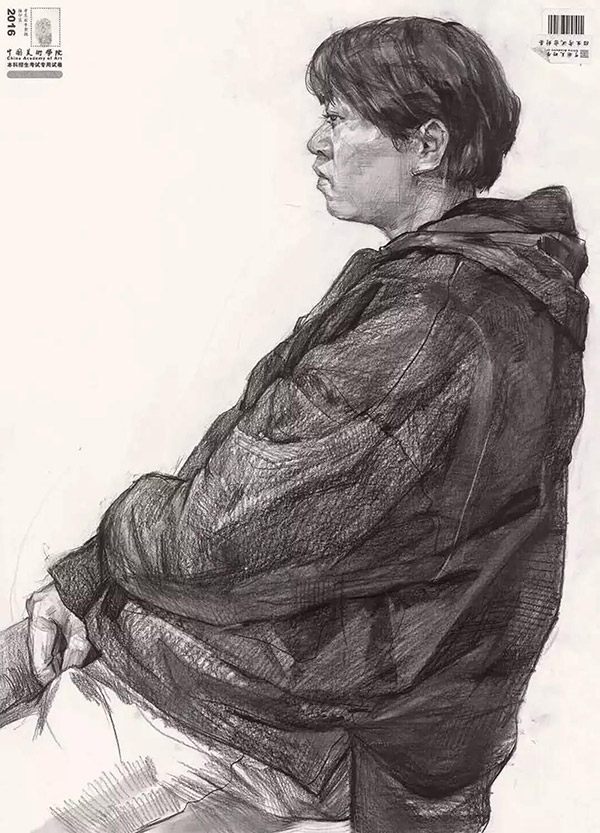 素描考题:半身像写生,30 岁左右女性,双手手心朝上,右手放在腿上,左手放在右手上