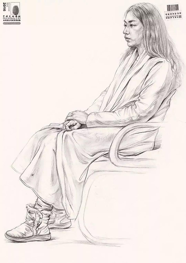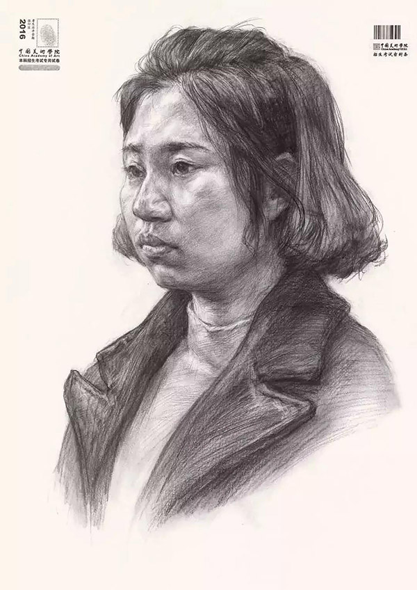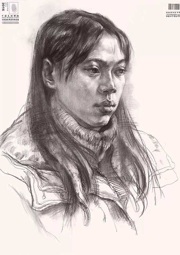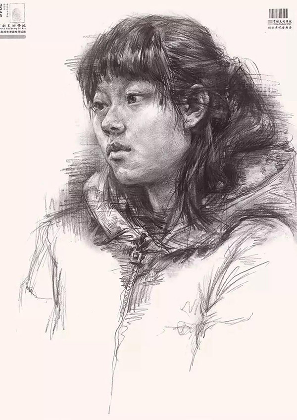 线性素描:半身带手写生,下午 3 小时(满分 100 分)。