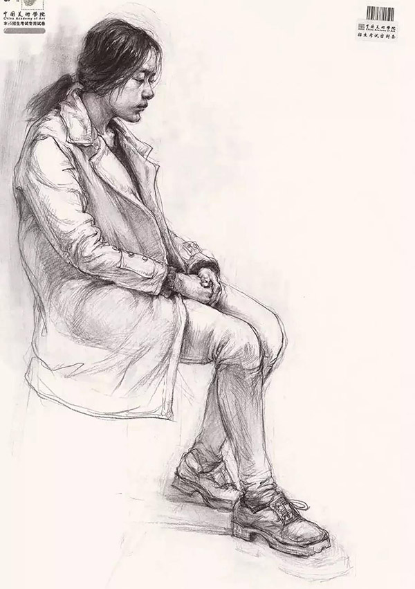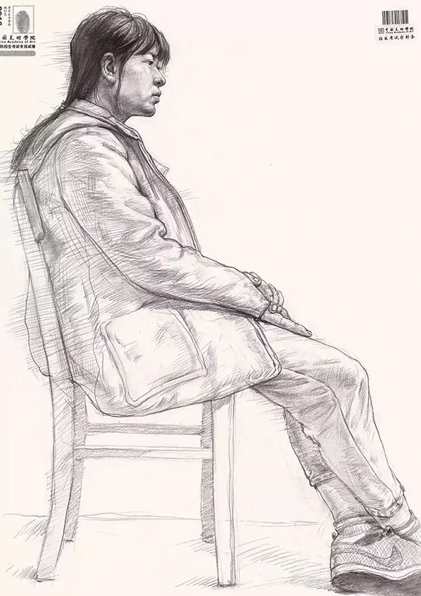 速写考题:30 分钟站姿慢写(一手叉腰,另一手自然下垂,稍息,头往一边看),20 分钟坐姿画 2 个(跷二郎腿)
