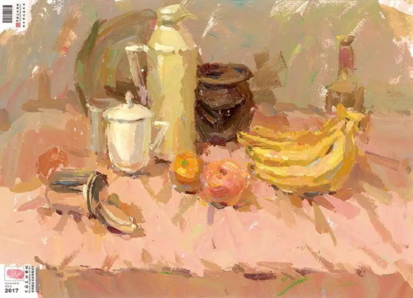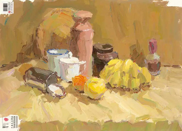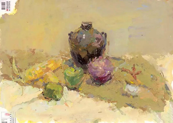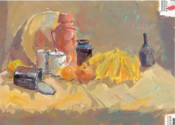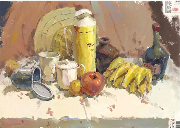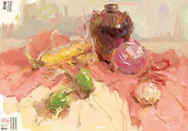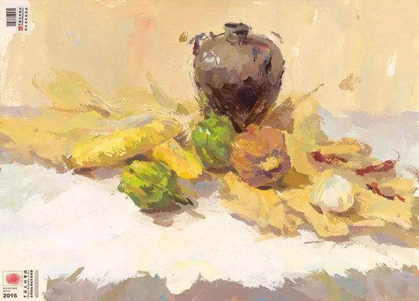 色彩考题:红酒瓶,果篮,玉米,石榴等