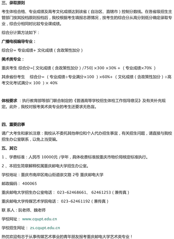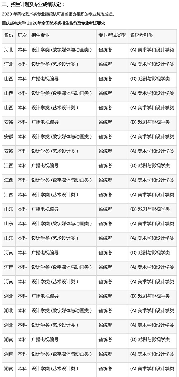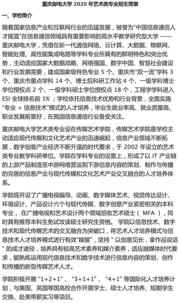 最新发布 | 重庆邮电大学2020年艺术类专业招生简章