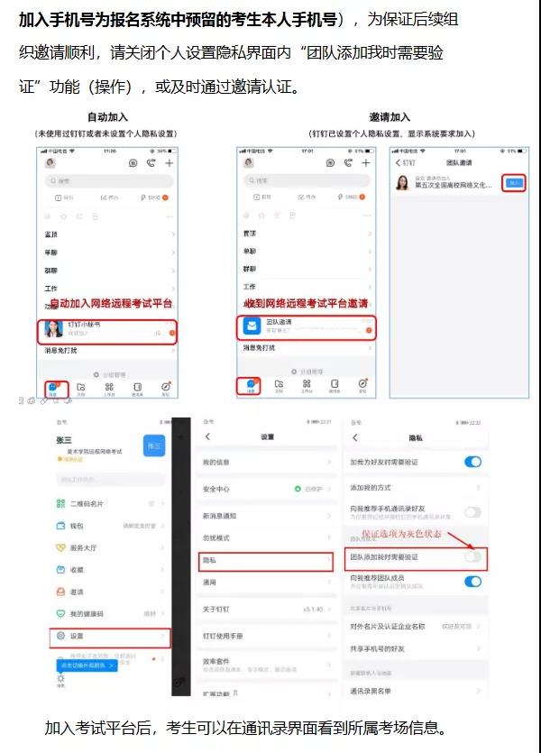 七、考前监考员将与考生进行钉钉连线,无故失联的考生,视为放弃考试。开考15分钟后迟到考生不得进入考场,迟到按缺考处理。