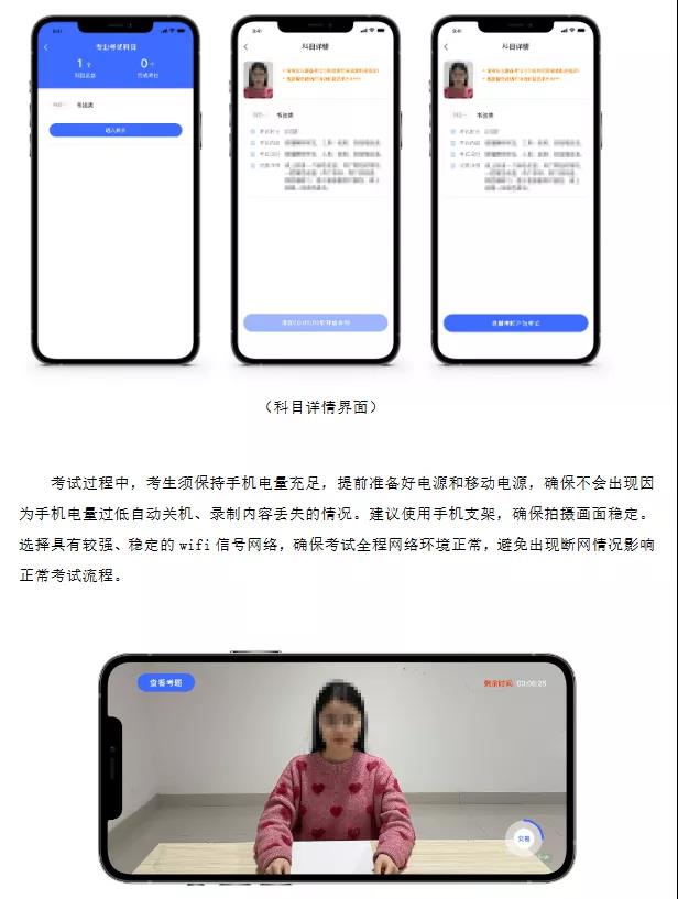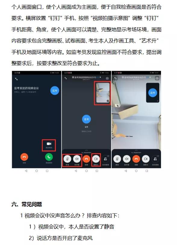 四、考生按时进入考场,按监考员要求360度展示考场,根据指令展示《准考证》、二代身份证件原件及考试用纸张。考试时,考生正对摄像头保持双手和头部完全呈现在摄像头可见画面中,考试过程中不得随意转换视频连接界面,不得接打电话。
