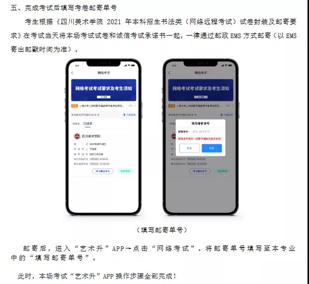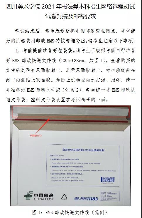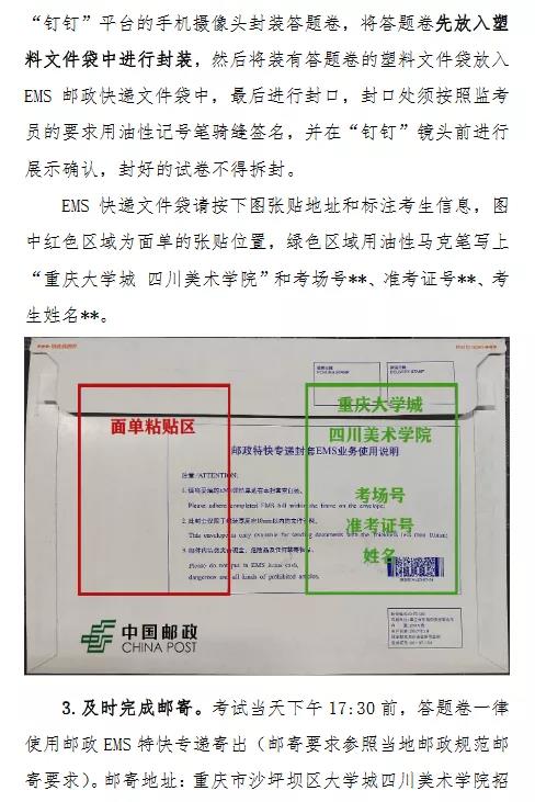 考试结束按监考员要求密封答题卷,按附件3:书法类(网络远程考试)试卷封装及邮寄要求邮寄答题卷。