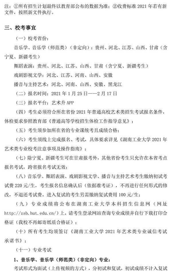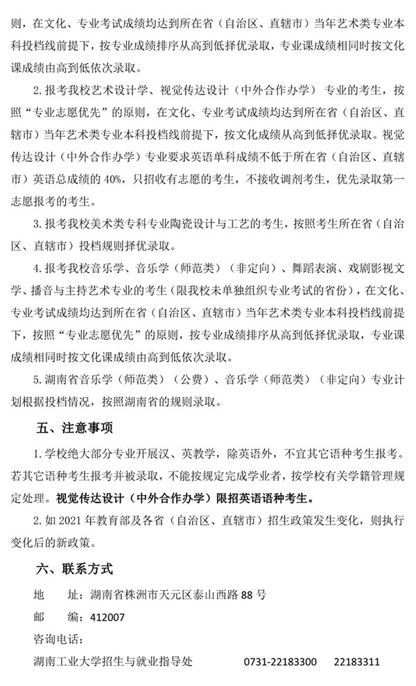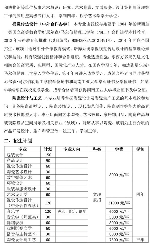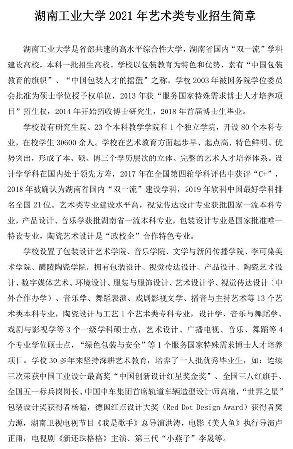 不组织校考 | 湖南工业大学2021年艺术类专业招生简章
