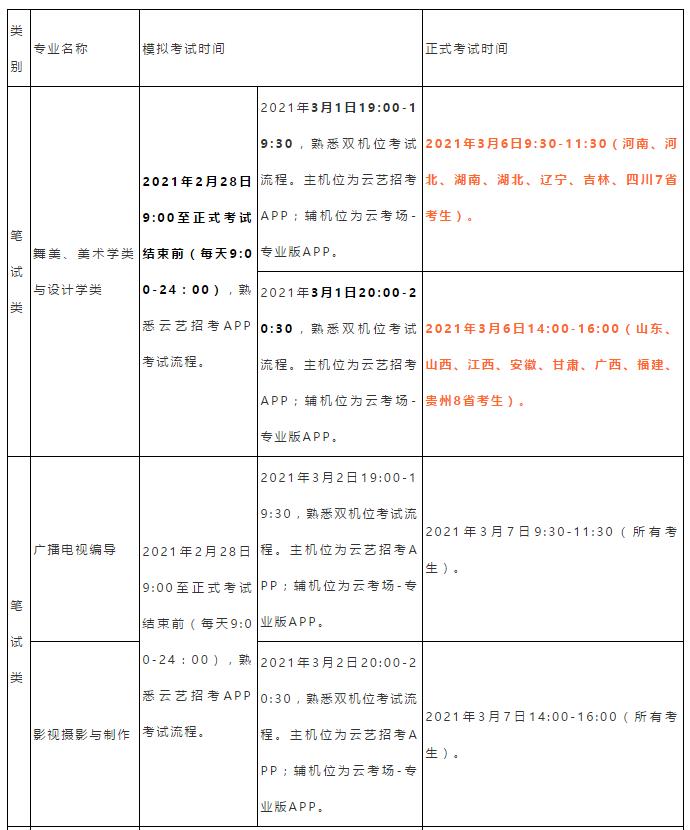 注:考生可通过云艺招考APP(2021版)查看个人考试安排。
