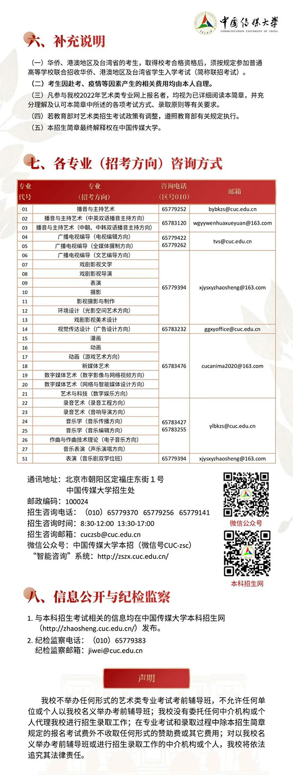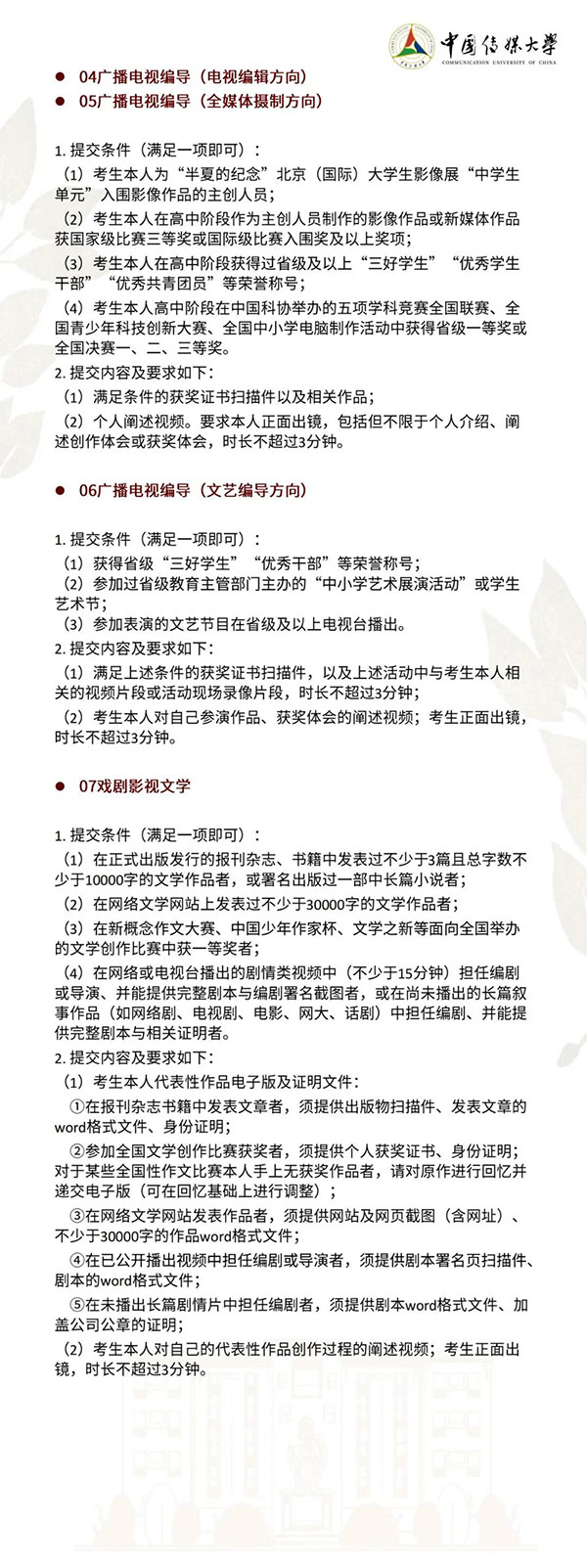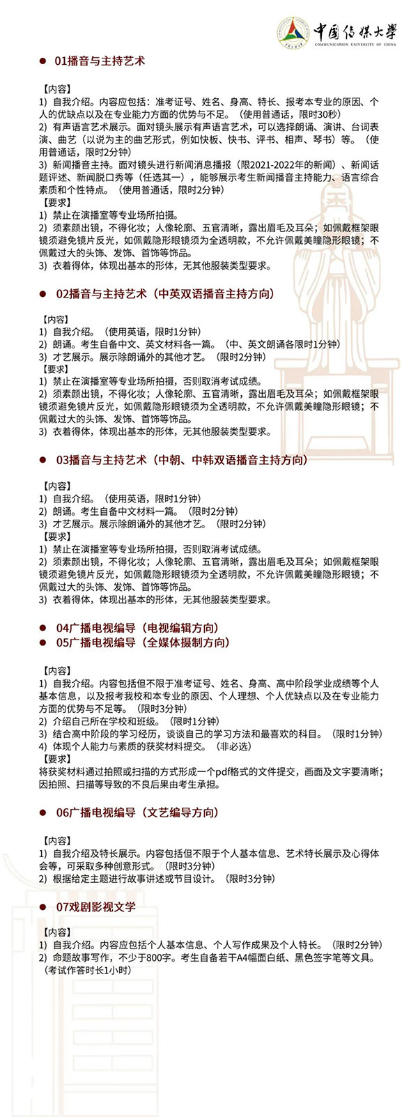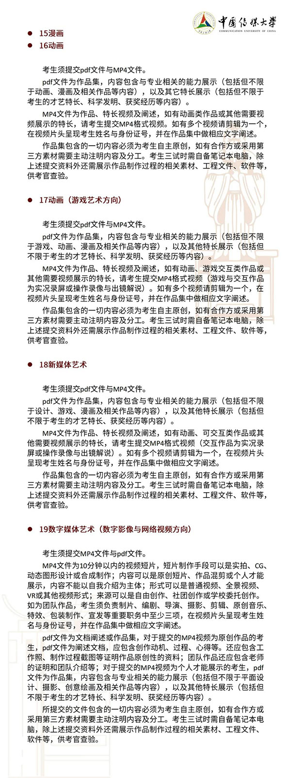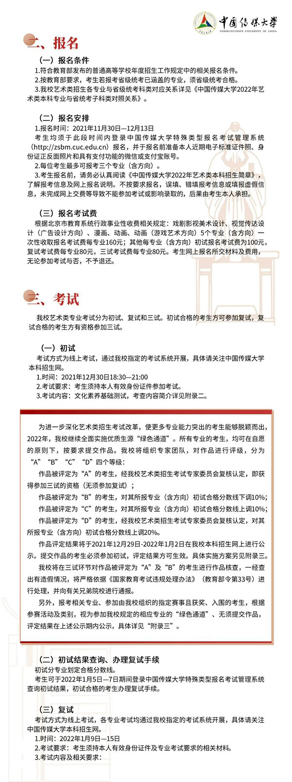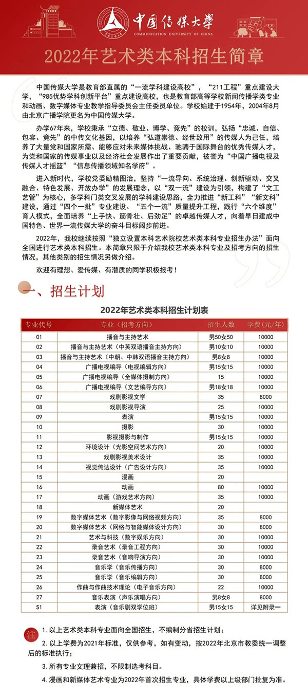 中国传媒大学2022年艺术类本科招生简章
