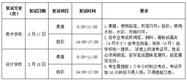 注:1.美术类校考专业将按美术学类、设计学类两个大类招生,考生不得兼报。入校后根据校考成绩与志愿相结合的原则按照相应的计划数进入到相应专业学习。