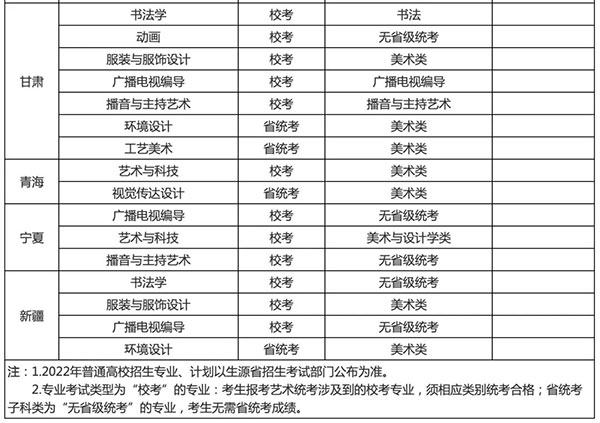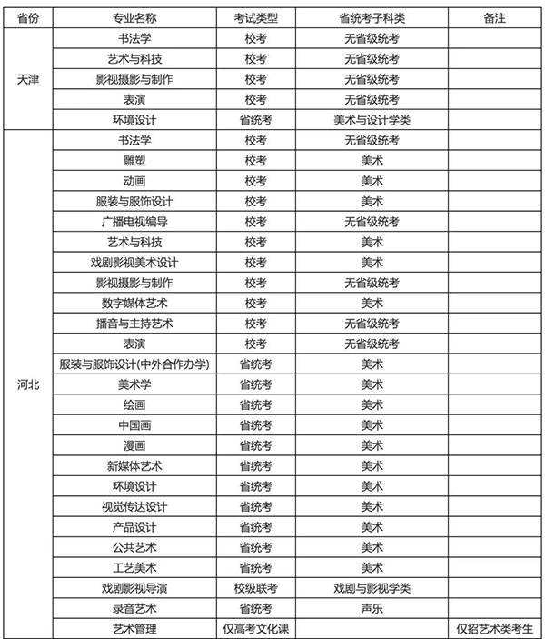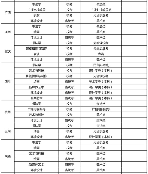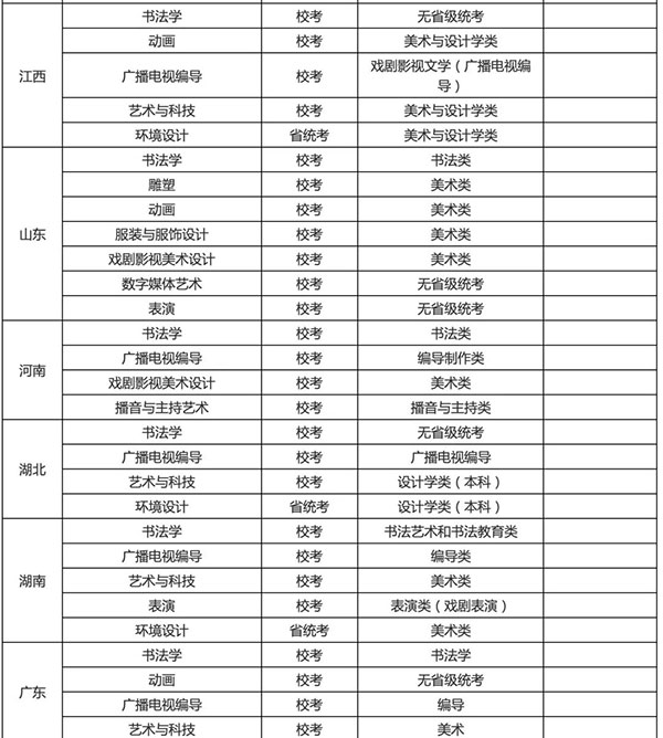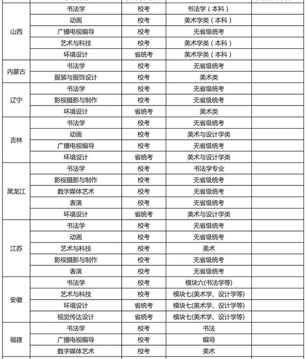 动画、绘画、视觉传达、数字媒体艺术4个专业方向有分省计划,采用省统考或校级联考。