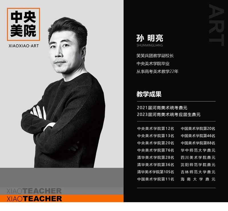 在笑笑美术兵团,孙明亮老师负责央清造型班的教学工作,主要是针对大美院造型方向。20年的教学经验让他在教育这方面有很多深刻的体会。因为他就是这样一步步走过来的,很多时候他非常能理解高三考前的这些孩子在学习上的困惑,包括学习中遇到困难该如何去解决。孙明亮老师会站在学生的角度去思考,帮他们解决问题。