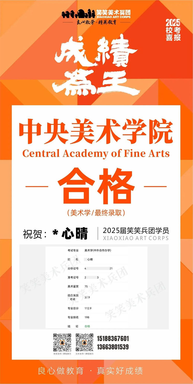 正如上面所言,你的反弹能力极强,你的韧性最好,正是这些优良的品质,终于你取得了满意的成绩,顺利录取中央美院。