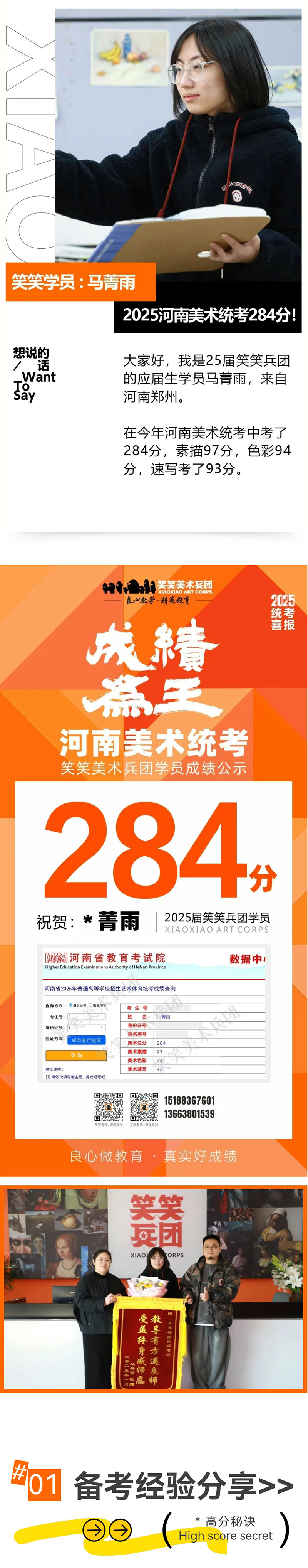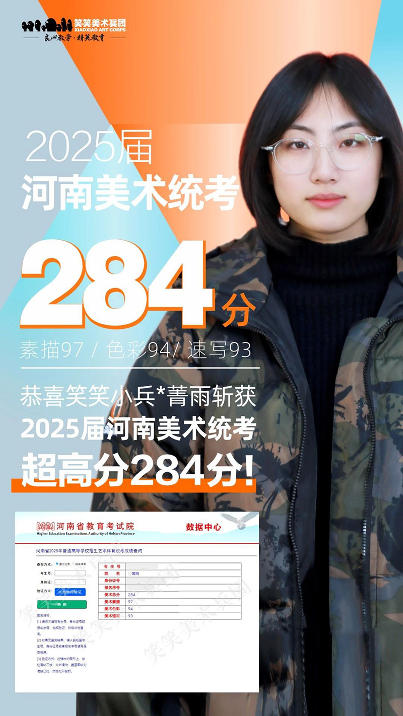 恭喜笑笑画室2025届马菁雨同学斩获河南美术统考284分!