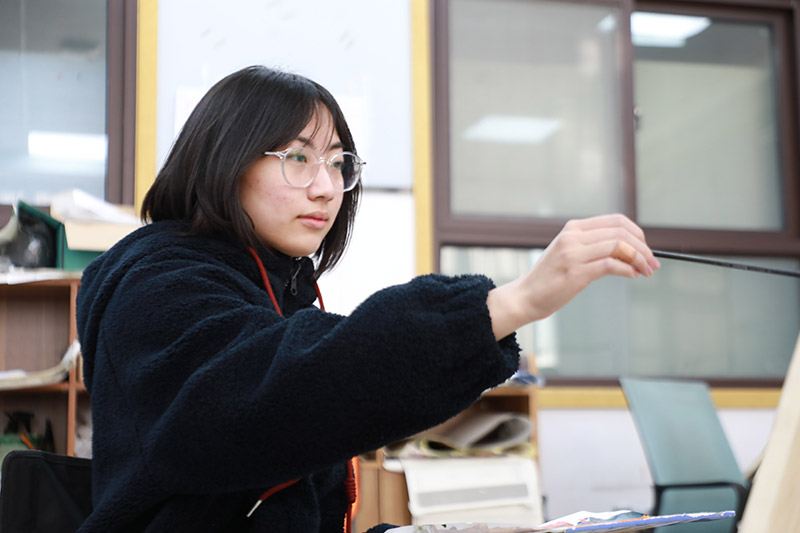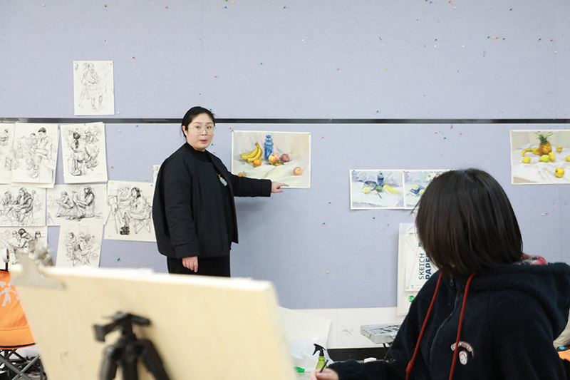 平时她在学习过程中,情绪也相对比较稳定。集训都会碰到画不好的时候,但是她都能积极面对,想办法解决。尤其是到了十一月份,离着考试越来越近,很多同学会越来越紧张,而且对分数会越来越重视,每一次阶段性的考试,都会引起一部分同学的情绪波动。但是有的同学对待分数就会比较理智,有问题就去解决,没有什么太大的问题就继续保持,这其中就有马菁雨。