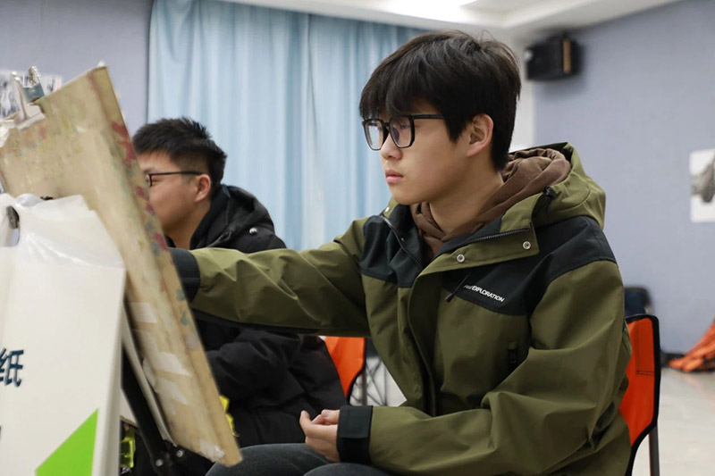 也就是说,每一张作业都有自己极强的目的性,画成什么样的效果才能够停手,到了11月份几乎每一张画,他都能够做到班里的前三名,这就为他在考场中能够非常稳定的发挥自己的能力奠定了基础。所以他的画经常能作为优秀课堂作业,贴到教室墙上供其他同学们学习。