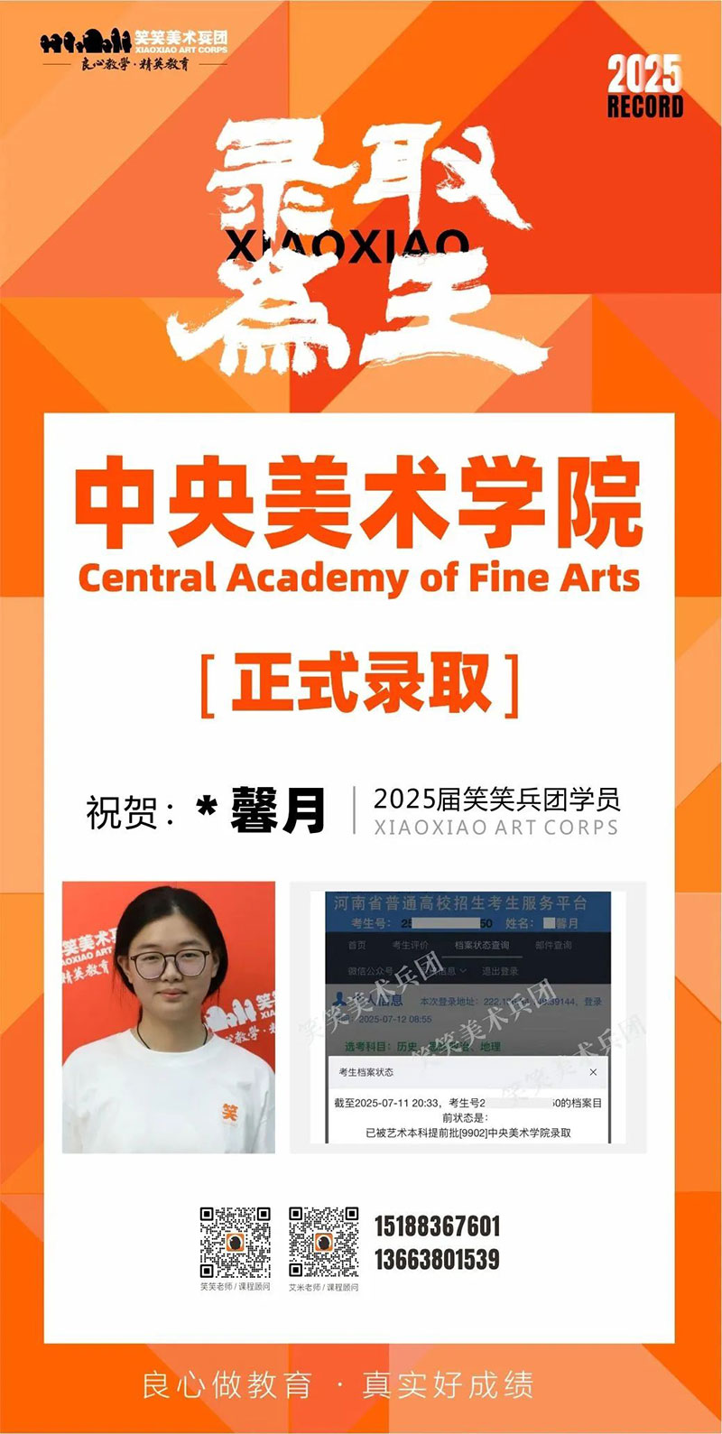 在竞争激烈的高考中,笑笑小兵*馨月同学能斩获第1名的成绩成功录取中央美术学院,绝非偶然。一定有着独特且行之有效的学习经验与方法,值得广大怀揣央美梦的学子借鉴。那么今天,就让我们一起来看看央美第一的学习秘籍吧~
