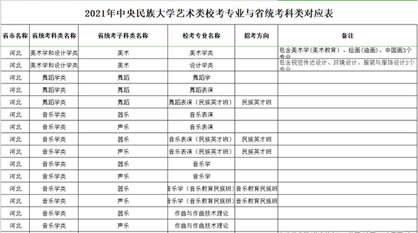 根据教育部相关文件规定,我校确定了2021年艺术类专业与各省统考科类的对应关系,在省统考专业范围内的须省统考合格方能报考我校,请报考我校艺术类专业的考生参考!